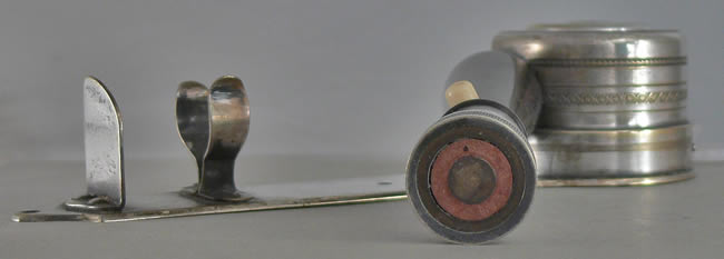 Der Ebenholzgriff kann bis zu 60cm herausgezogen werden, per Knopfdruck wurde der Kopf zum Glühen gebracht.Auf der Rückseite Schraubanschlüsse fur die Bordspannung (Lichtmaschine oder Autobatterie).