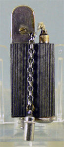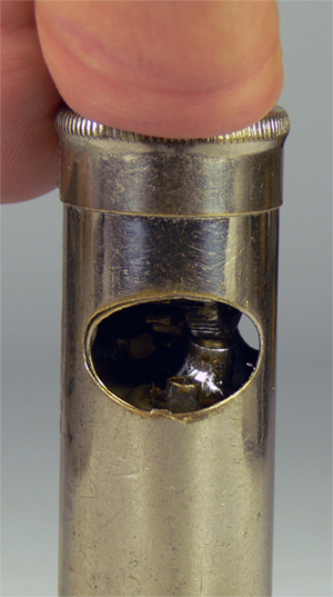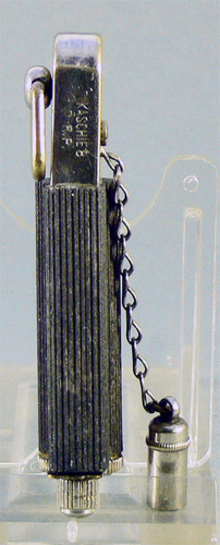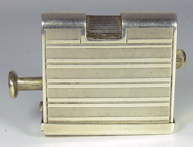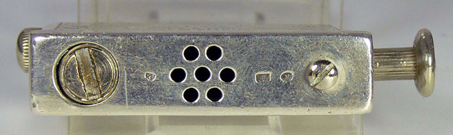 Der Feuerzeugdeckel wird an der Seite des Reibrades auf die kleine Vierkantfläche gesteckt und somit das Feuerzeug betätigt. (keine schmutzigen Hände)