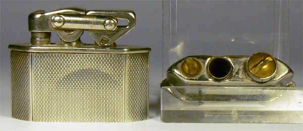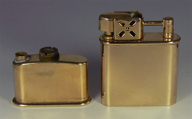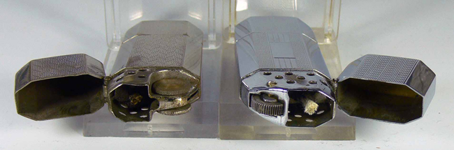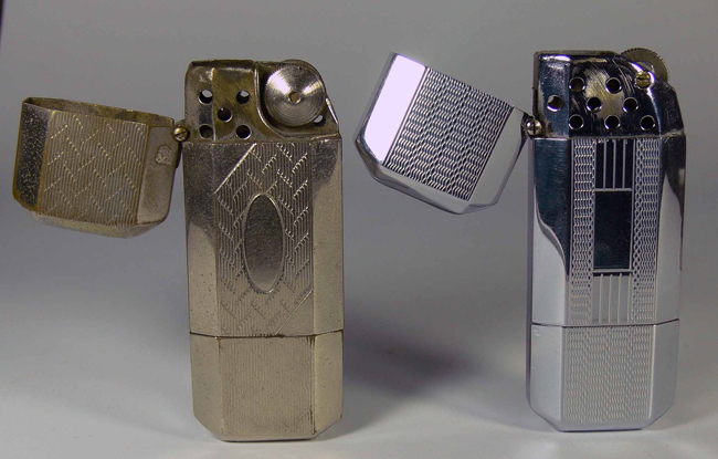 Gleiches Feuerzeugmodell, unterschiedliche Öffnung oben, unterschiedliche Gashebel und unterschiedliche Drucktasten