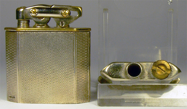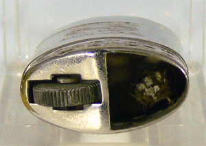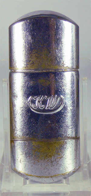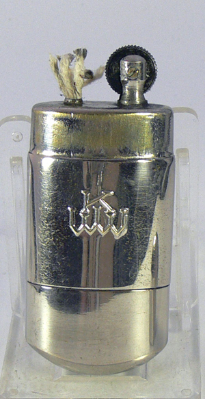 Extrem seltenes KW-Feuerzeug, ohne Windschutz, Unter der Schraube (Foto 3) befindet sich ein Reservetank.