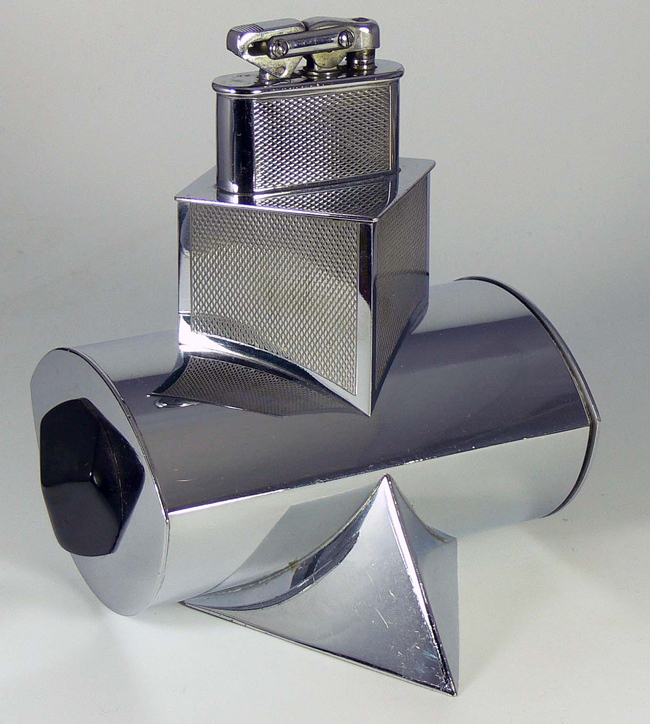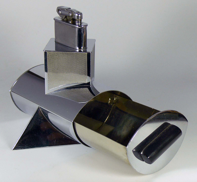 Extrem seltenes Tischfeuerzeug mit Zigarettenfach