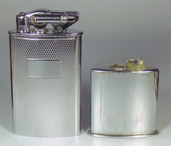 Benzinfeuerzeug mit verstellbarer Flamme. Tank ohne Wattefüllung.