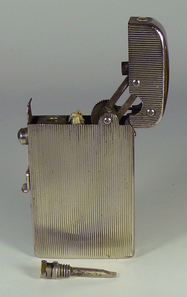 2) einen versteckten Schraubendreher vor dem Docht für den Zündsteinwechsel.
