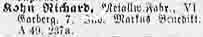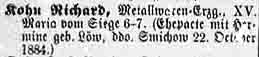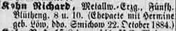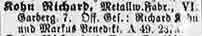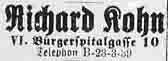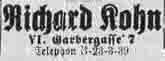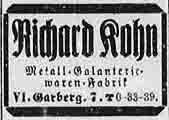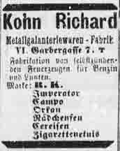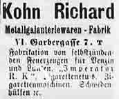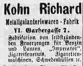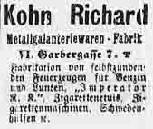 1888: Gründung der Firma Richard Kohn Metallwaren-Erzeugung in der Blüthengasse 8 und 10 in Wien XV.