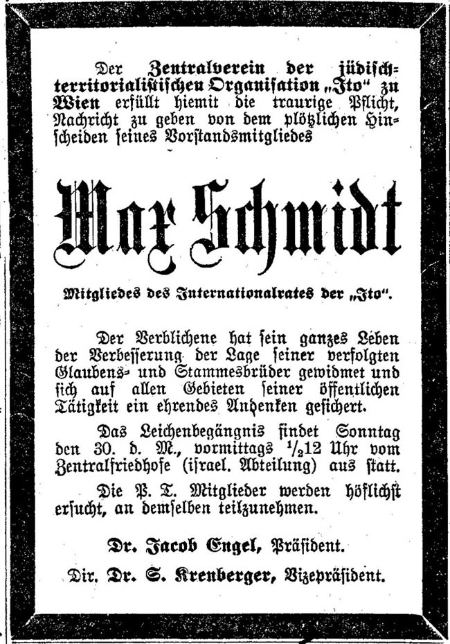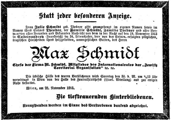Todesanzeige aus der Wiener Zeitung "Neue Freie Presse" vom 29.November1913.
